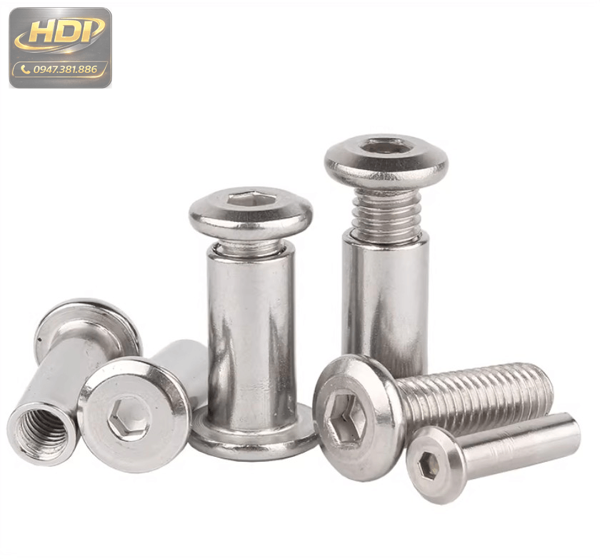 Loại ốc vít đực cái inox 304 lục giác chìm M2 M3 M4 còn được gọi là ốc Chicago inox đầu Allen, thường dùng để liên kết bảng mica, kim loại mỏng, gỗ hoặc nhựa một cách chắc chắn và thẩm mỹ.
